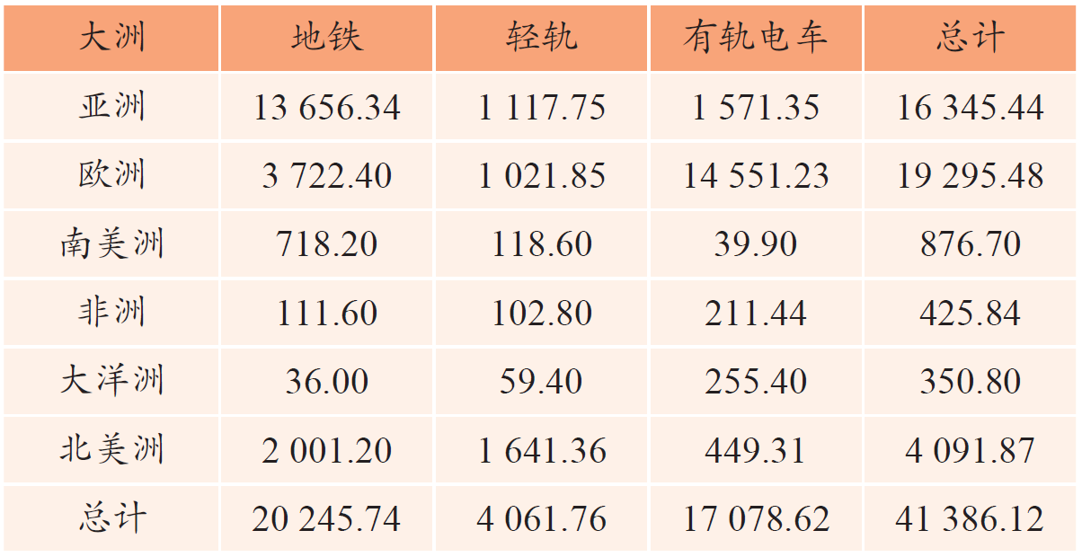 Figure 1 shows the overall scale of urban rail transit across major continents in the world (Note: All cities in Russia are classified into Europe for calculation). Data indicates that subways and trams are the mainstream types of urban rail transit globally, and global urban rail transit is mainly concentrated in Eurasia, with subways mainly distributed in Asian countries.[1]