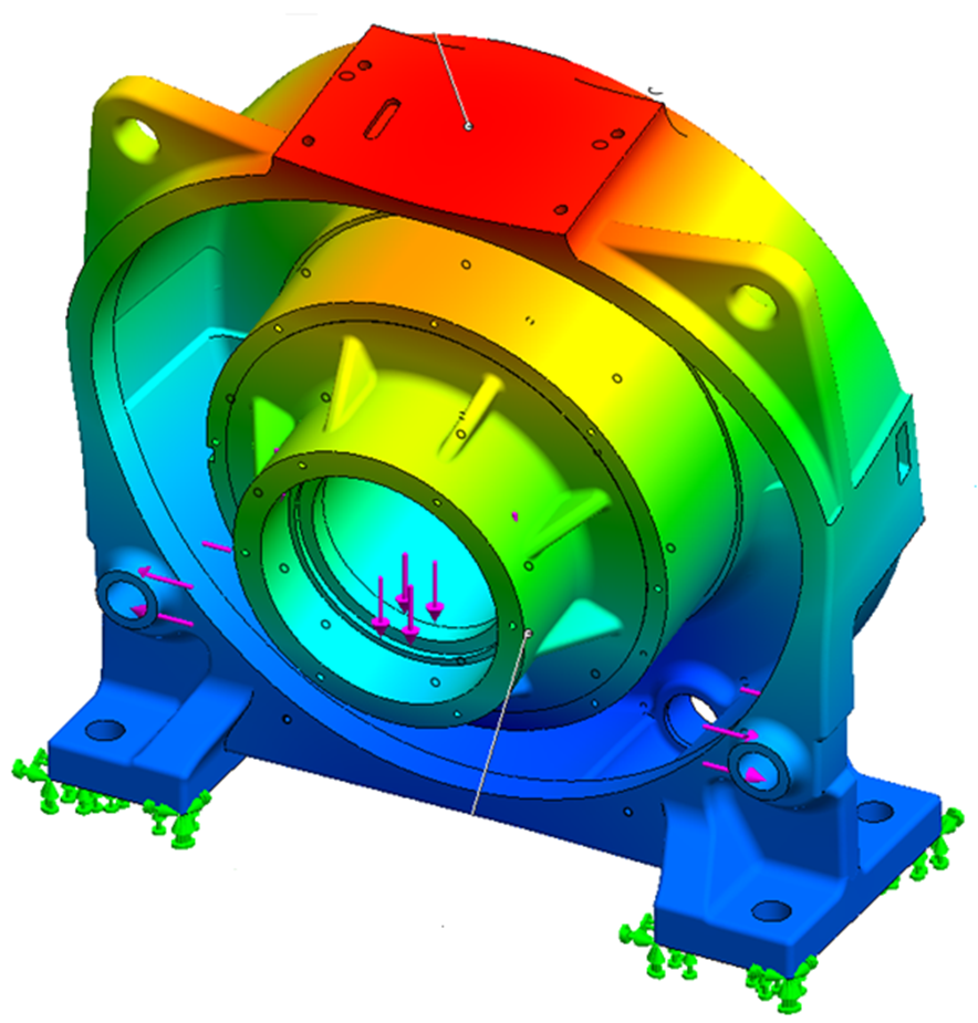 High safety and reliability are the basic requirements and attributes of elevators, and people have even higher requirements for the safety and reliability of subway elevators. Therefore, we conduct a detailed analysis of mechanical strength (Figure 7), and put forward special requirements and upgrades for mechanical load-bearing capacity and braking performance. The safety factors for load-bearing of key mechanical components such as the machine base, wheel hub, traction sheave, and shaft have been increased accordingly.
