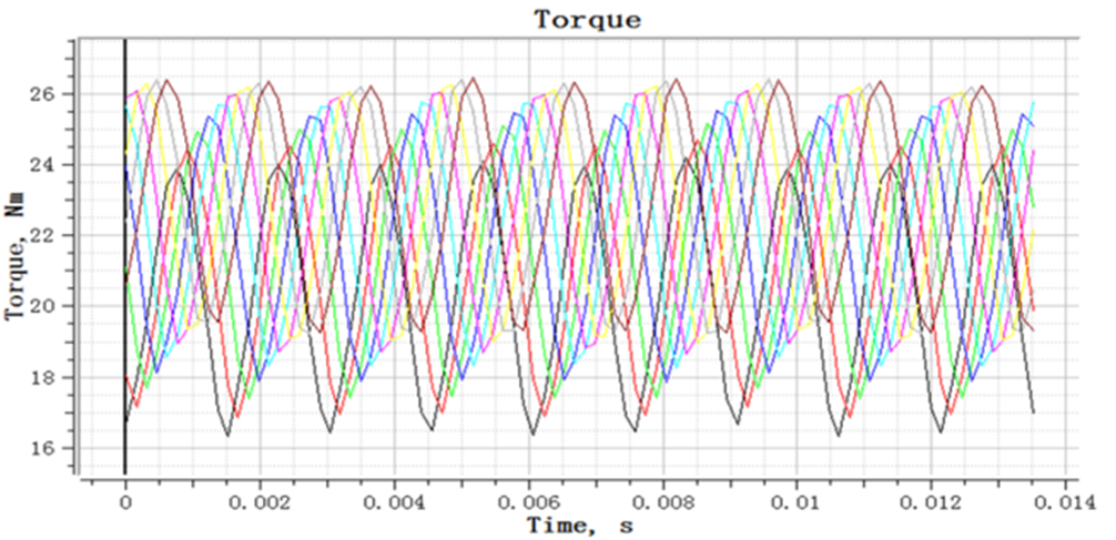 To provide a comfortable riding experience, the design of the traction machine also pays special attention to harmonic suppression, especially the suppression and reduction of low-order harmonics (which have a great impact on comfort) and their force wave amplitude (Figure 8), as well as the reduction of low-speed torque ripple (Figure 9) and cogging torque. This ensures that the elevator runs smoothly throughout the process with low noise and low vibration, providing passengers with a good riding experience.